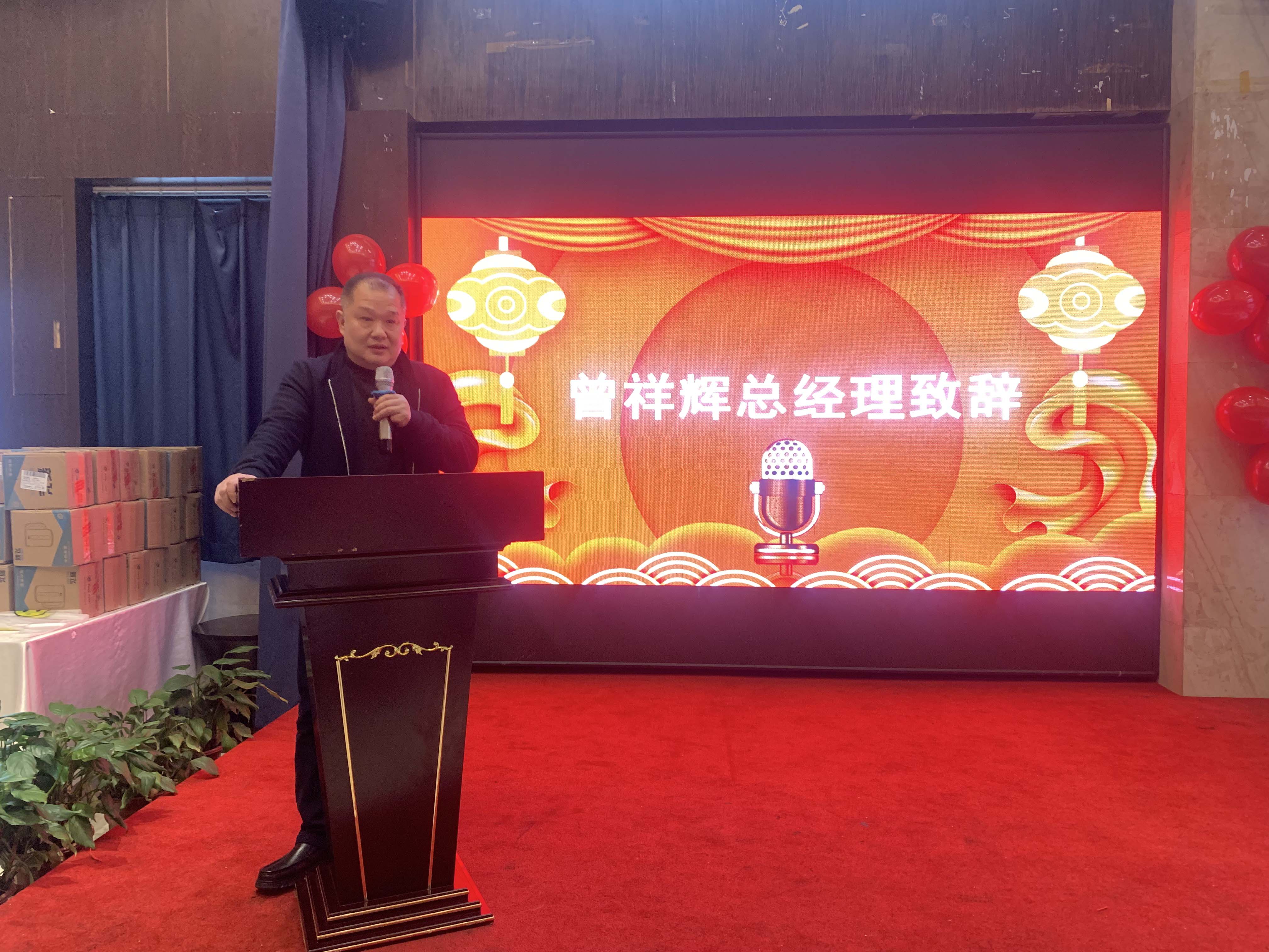 隨后曾祥輝總經理上臺致辭,曾總首先肯定了各部門在年的工作成果,在新冠疫情爆發(fā)以來,整體經濟發(fā)展都較為艱難,但新天地公司能夠保持業(yè)績平穩(wěn)上升,這份成績來之不易,離不開大家的共同努力。曾總也對新一年的工作提出了新的要求,指出了公司在新一年的發(fā)展方向。